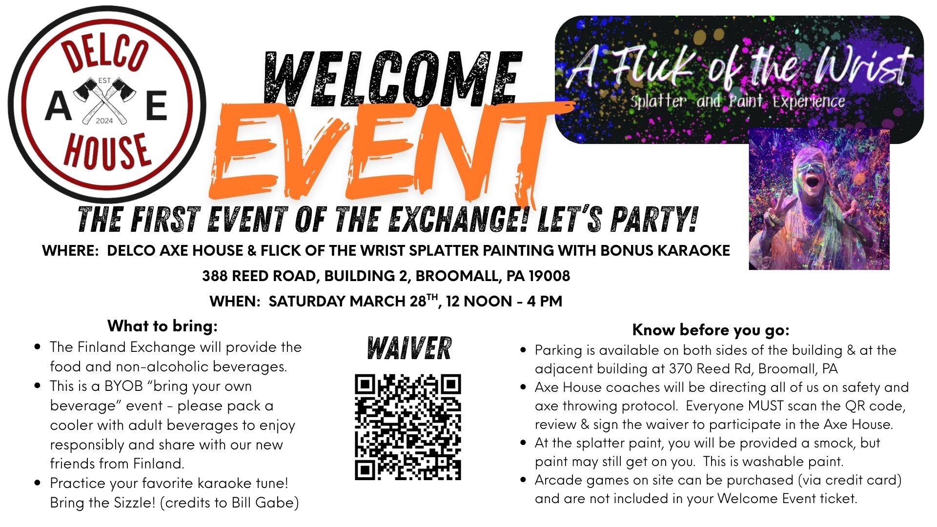 - Help with welcome event at Delco Axe Throwing